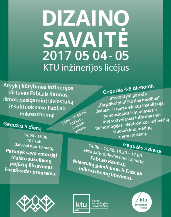2017 m. gegužės 1-7 dienomis Lietuvoje vyksta festivalis DIZAINO SAVAITĖ 2017, kuriame pirmą kartą dalyvauja ir KTU inžinerijos licėjus.