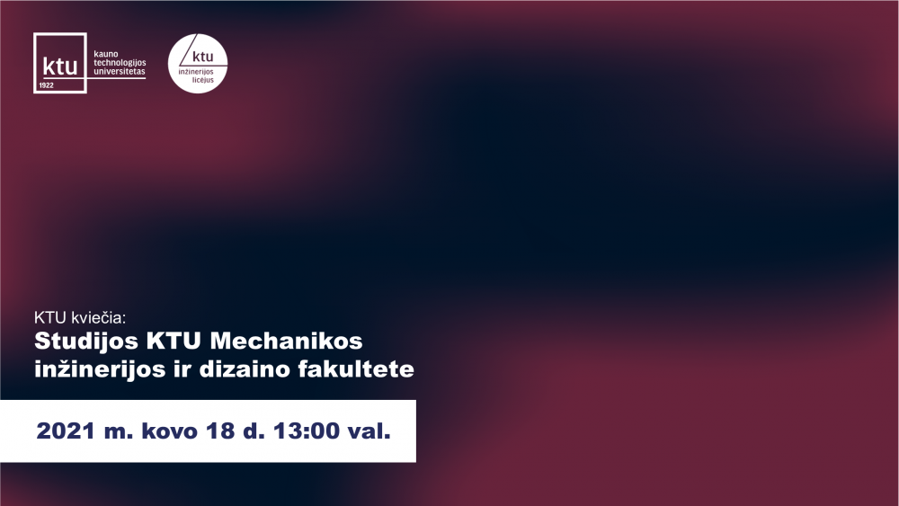 Kovo 18 d. 13:00 val. kviečiame į pažintį su KTU Mechanikos inžinerijos ir dizaino fakultetu ir jame siūlomomis studijų programomis. Fakultetą ir fakulteto studijų programas pristatys fakulteto rinkodaros ir komunikacijos koordinatorė Indrė Čeberkaitė bei fakulteto studentai.