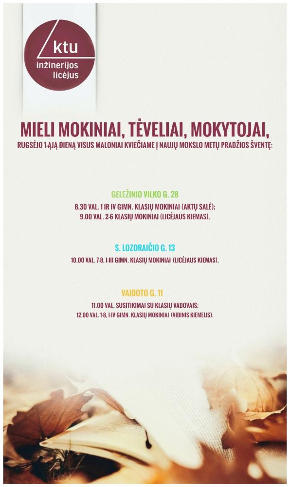 Rugsėjo 1-ąją dieną visus maloniai kviečiame į naujų mokslo metų pradžios šventę: