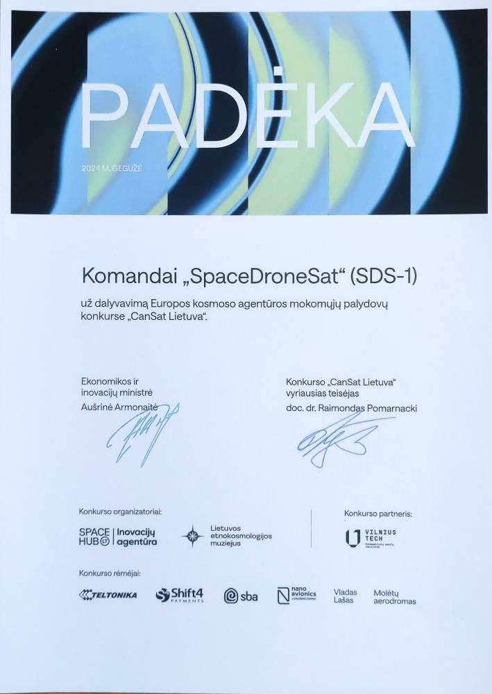 Europos kosmoso agentūros inicijuotame mokomųjų palydovų konkurse „CanSat Lietuva“ buvo atrinktos 26 mokinių komandos. Dalyviai išsikėlė misijos tikslus, projektavo „CanSat“ modelius, atliko sistemos bandymus, vykdė modelio paleidimą ir mokslinių duomenų analizę.