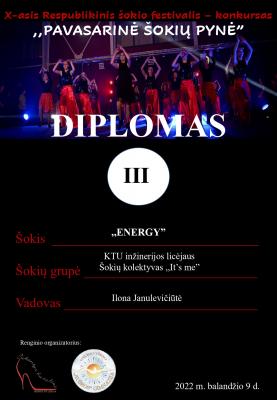 III vieta X-ajame respublikiniame šokio festivalyje-konkurse "Pavasarinė šokių pynė 2022".