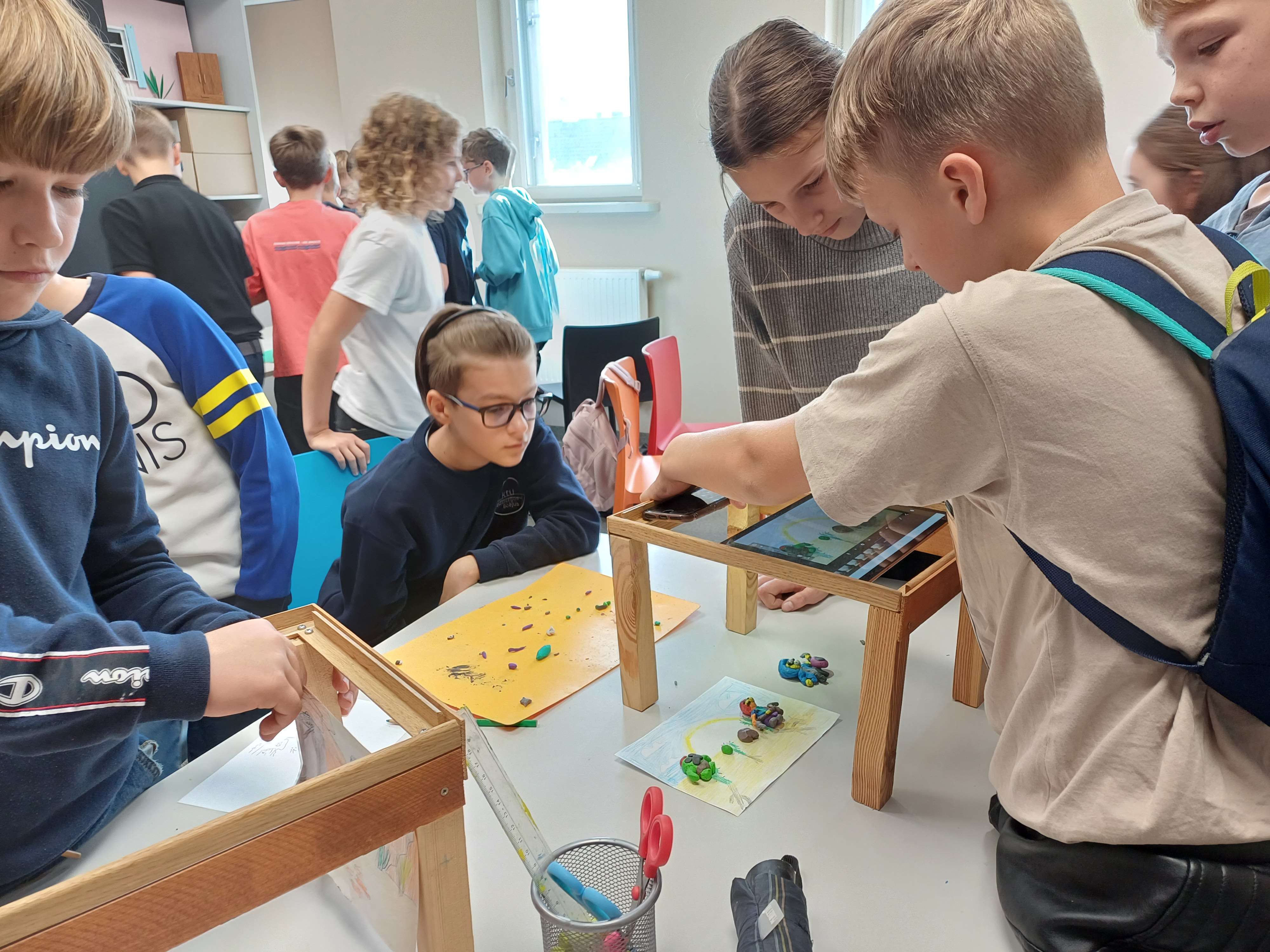 2024-09-27 Kauno Technologijų Universiteto Inžinerijoas Licėjaus 5 d klasės 27 mokiniai vyko į Kauno kino centrą „Romuva“, dalyvauti edukacijoje ‘’Kinas nuo nulio”. Edukacijos dalyviai kūrė istorijas trumpametražiams animaciniams filmukams, o veikėjus ir visus reikalingus rekvizitus gamino iš karpinių arba plastilino. Pažinę sustabdyto kadro animacijos techniką, planšetiniais kompiuteriais fotografavo veikėjus taip prikeldami juos gyvenimui. Veikla šiose dirbtuvėse skatino kūrybiškumą, mokė darbo komandoje ir vizualaus istorijos pasakojimo ir leido atrasti animaciją, kaip saviraiškos formą.
