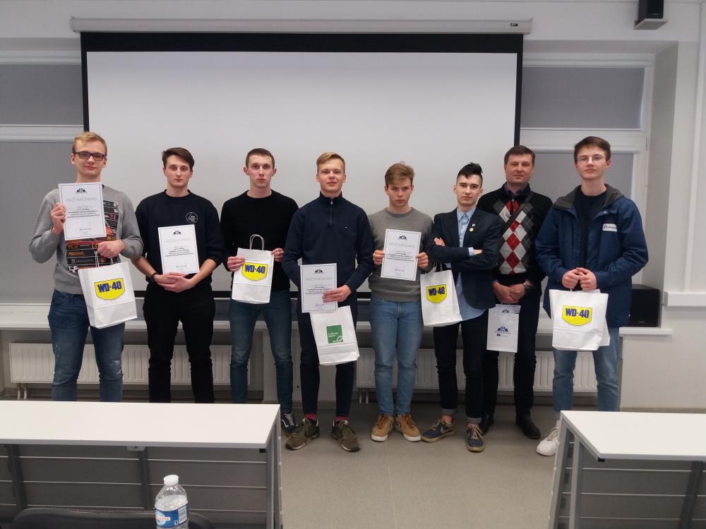 KTU inžinerijos licėjaus dalyviai: R. Tribičius, L. Bendžaitis, P. Andrulionis, P. Mackevičius, P. Stačiokas, E. Iljinas, A. Jankauskas (III gimnazijos klasės mokiniai) ir inžinerijos mokytojas R. Andriuška. Automobilių saugaus eismo ir KET rungtyje L. Bendžaitis užėmė III vietą, automobilių raidos ir sandaros rungtyje E. Iljinas - II vietą, lenktyninių automobilių simuliatoriaus rungtyje A.Jankauskas - I vietą, P. Stačiokas - III vietą, automobilių komponentų atpažinimo rungtyje R.Tribičius - III vietą. Bendroje įskaitoje tarp visų dalyvių „Jaunasis automobilių inžinierius 2019“ L. Bendžaitis laimėjo III vietą.