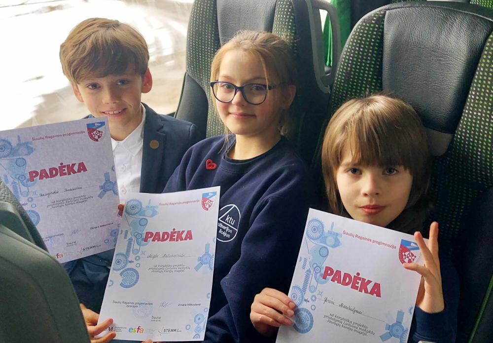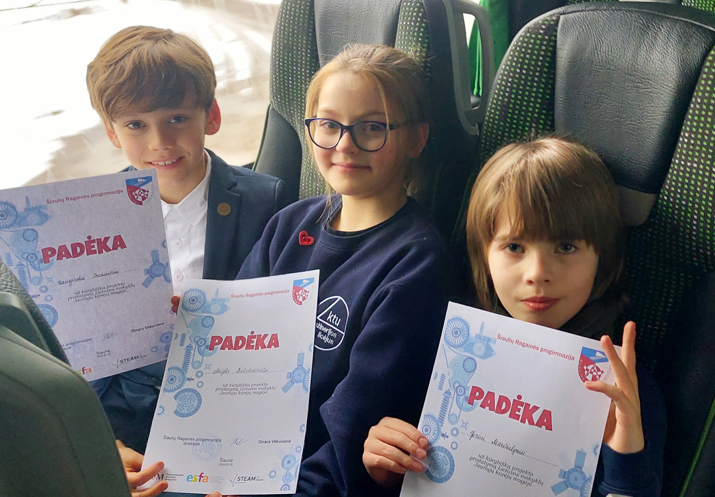 3a klasės mokiniai Miglė Batulevičiūtė, Daugirdas Inokaitis, Joris Marčiulynas kartu su mokytojomis Neringa Arlauskiene ir Lijana Pabilione dalyvavo Lietuvos inžinerinių mokyklų jaunųjų kūrėjų mugėje, kurią organizavo Šiaulių Ragainės progimnazija. STEAM centre vykusioje mugėje vaikai pristatė kūrybinius inžinerinius projektus, atliko eksperimentus, pasidžiaugė kitų dalyvių darbais, gilino inžinerines žinias, tobulino viešojo kalbėjimo įgūdžius.