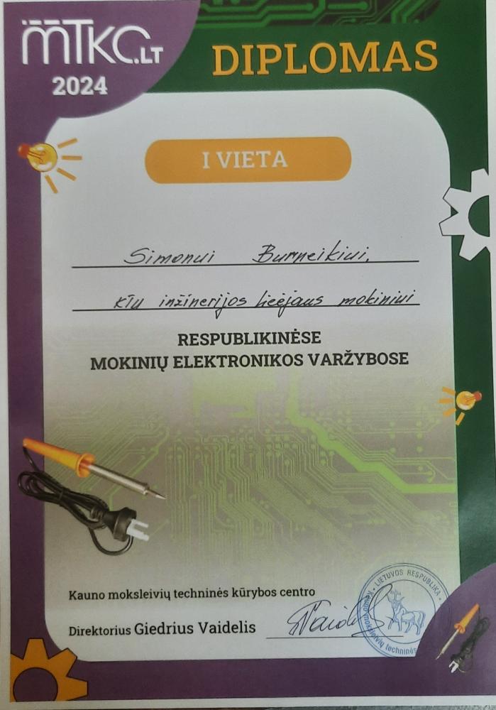 2024 balandžio 19 d. KTU inžinerijos licėjaus (Lozoraičio g.) mokiniai dalyvavo Respublikinėse elektronikos varžybose, kurias organizavo MTKC.