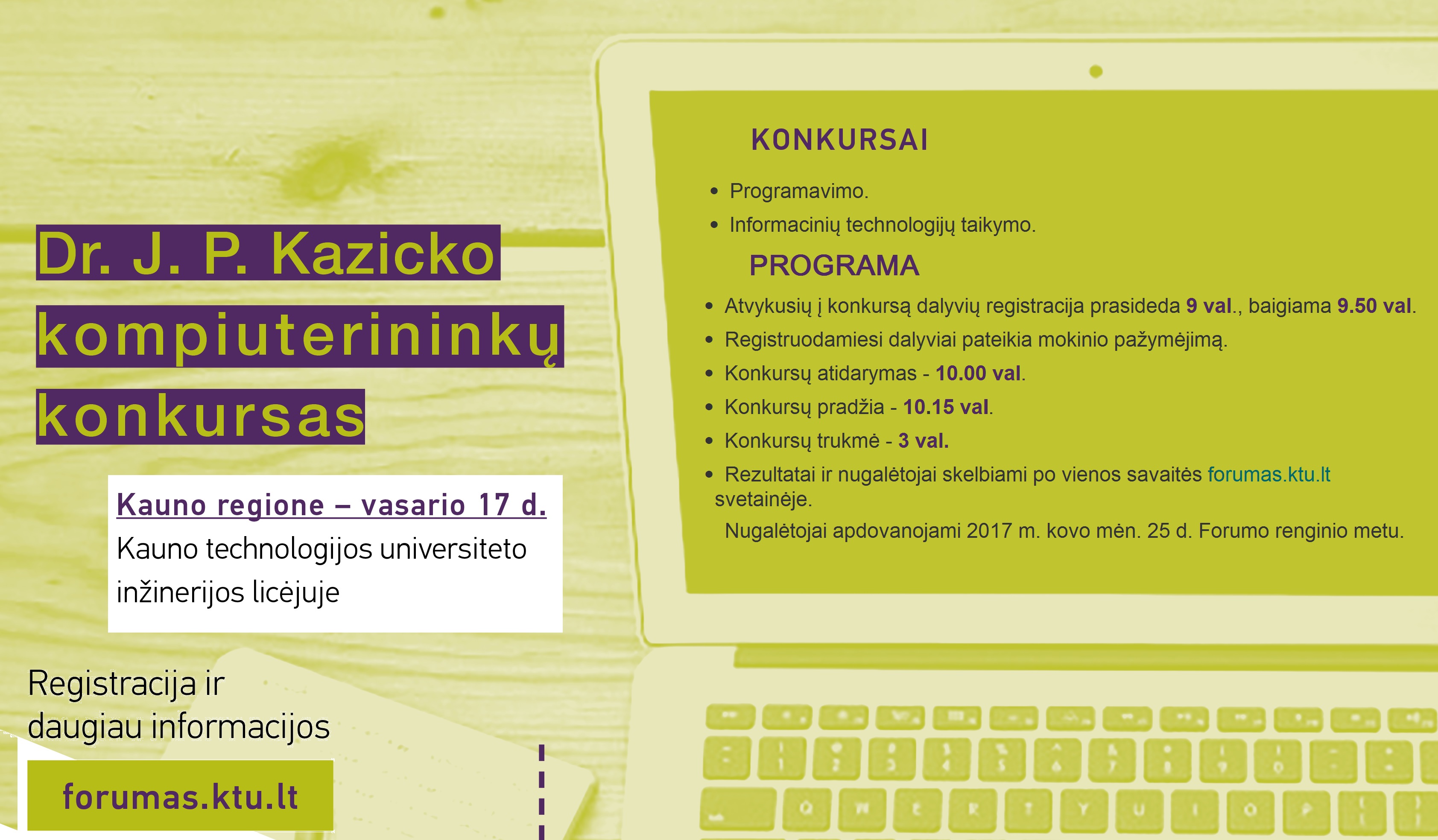 Š.m. vasario 17 d. KTU inžinerijos licėjuje vyks Dr. J. P. Kazicko kompiuterininkų konkursas.