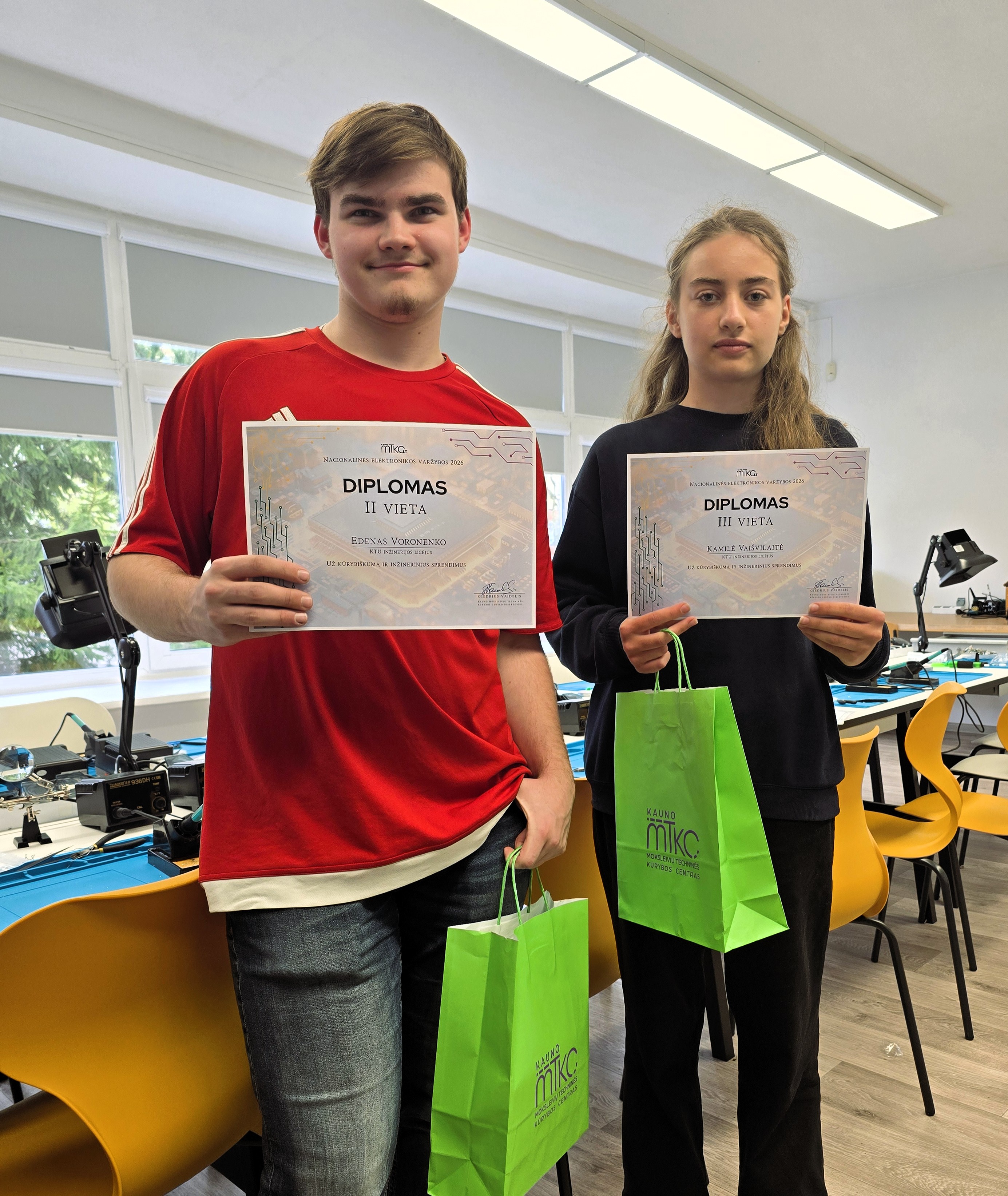 Sveikiname Edeną ir Kamilę! Dėkojame mokytojams, kurie ugdo gebėjimą žinias taikyti praktiškai.