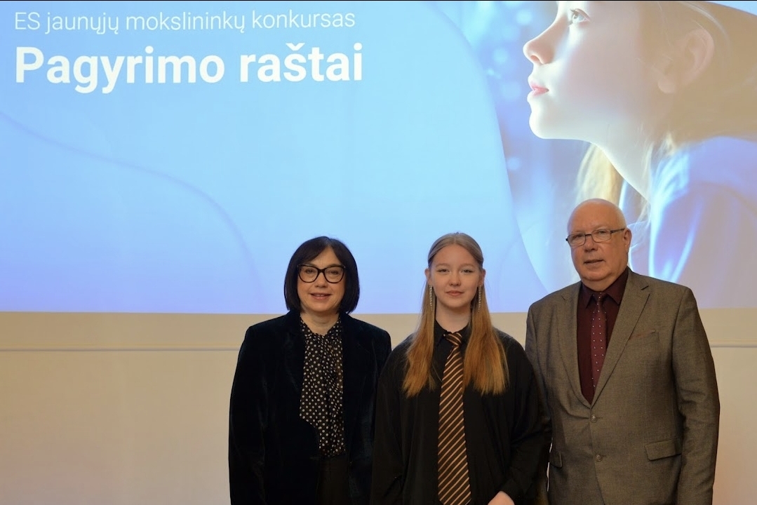 Sveikiname II c gimnazijos klasės mokinę Ugnę Karečkaitę, pelniusią pagyrimo raštą ES jaunųjų mokslininkų konkurso finaliniame ture!